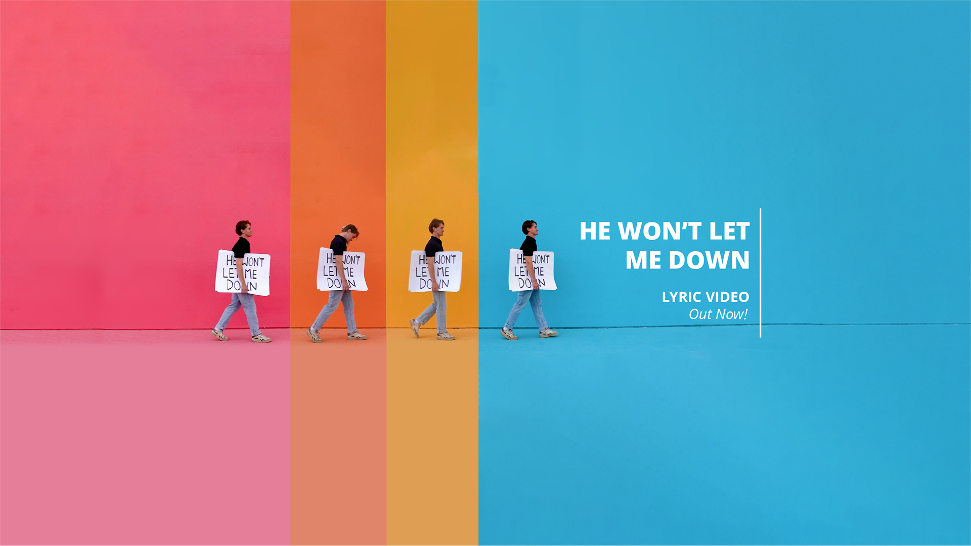 For this project, I created a visual lyric video for the single “He Won’t Let Me Down.” I developed a playful concept where each time the lyric “He won’t let me down” played, the performer physically jumped and landed on the word “down,” with each landing on a new color to create visual rhythm and progression.